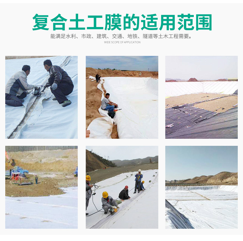 產(chǎn)品介紹: 防滲復(fù)合土工膜:復(fù)合土工膜是用土工織物與土工膜復(fù)合而成的不透水材料,它主要用于防滲,復(fù)合土工膜分為一布一膜和兩布一膜,抗拉、抗撕裂、頂破等物理力學(xué)性能指