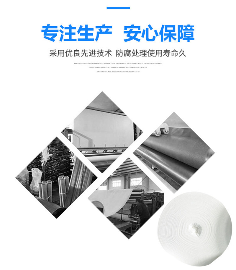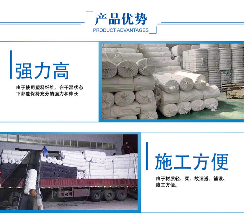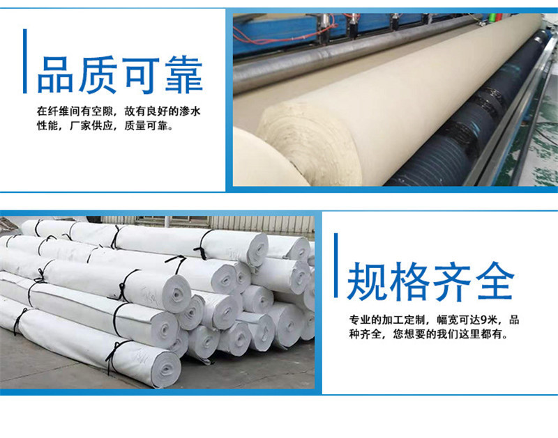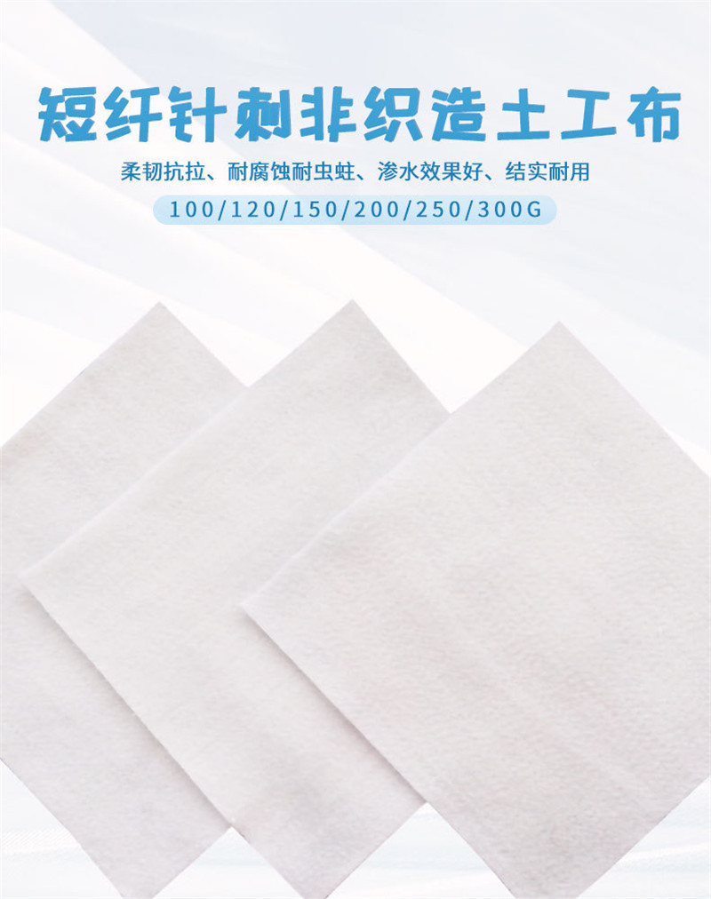 產(chǎn)品介紹: 我們常說的土工布即短絲土工布或短纖土工布,它是由合成纖維通過針刺或編織而成的透水性土工合成材料。成品為布狀。短絲土工布具有良好的力學(xué)功能,透水性好,并能